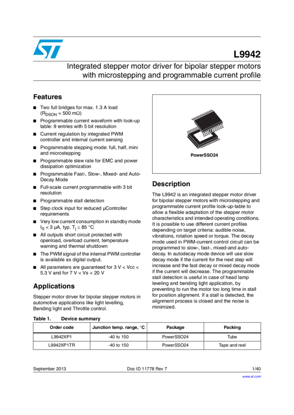 dSPIN: fully integrated microstepping motor driver with motion engine and SPI