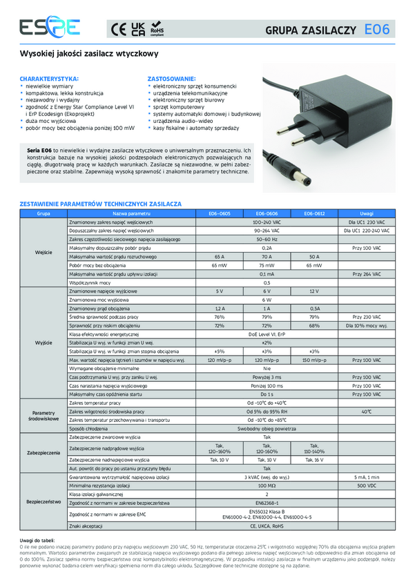 Zasilacz wtyczkowy ESPE 5V 1,2A 6W microUSB | E06-0605-UM1