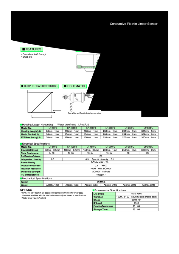 Potencjometr liniowy przew.plastyk travel 50mm; lin 0,5% dł.98mm+ ; rozstaw śr. 88mm; szer 20 z uszami 40mm; roz. śr. 30mm; wys.16+2mm; 1,5W/70 st bez.spr.por. Rezystancja.. odpowiedniki Sakae pm18flpa50.. pm18flpbc50..