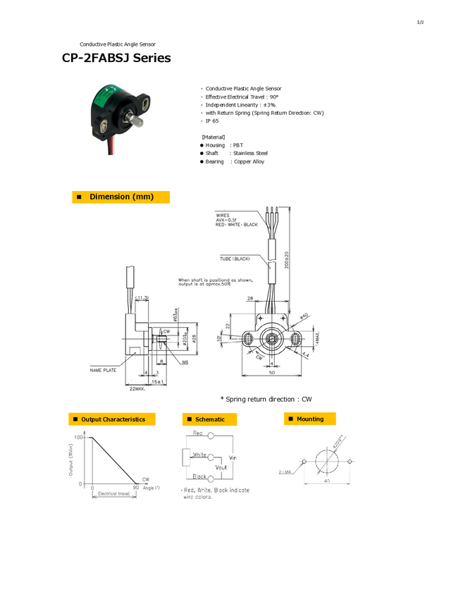 Potencjometr przewodzący plastyk, Servo ?? 62 mm;tol.10%;lin 0,05% kąt.el. 340 st; mech 360 st; 4W/70st;1 obrotowy. śr.62 mm; gł. 24,5mm ośka 6mm, dł.19mm; wypr.z boku. Proponujemy podobny f-rmy Sakae PMFCP50A..