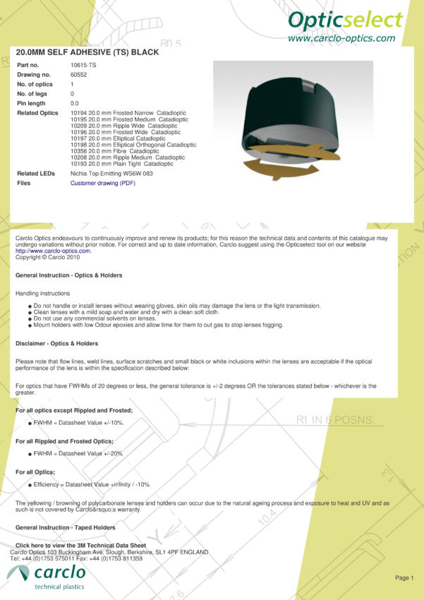 Holder Carclo 10615-TS, 20mm, do diod Cree serii XM-L, na taśmie, czarny