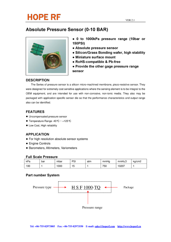 Bezwzględny czujnik ciśnienia, zakres 100kPa, obudowa: miedziany cylinder