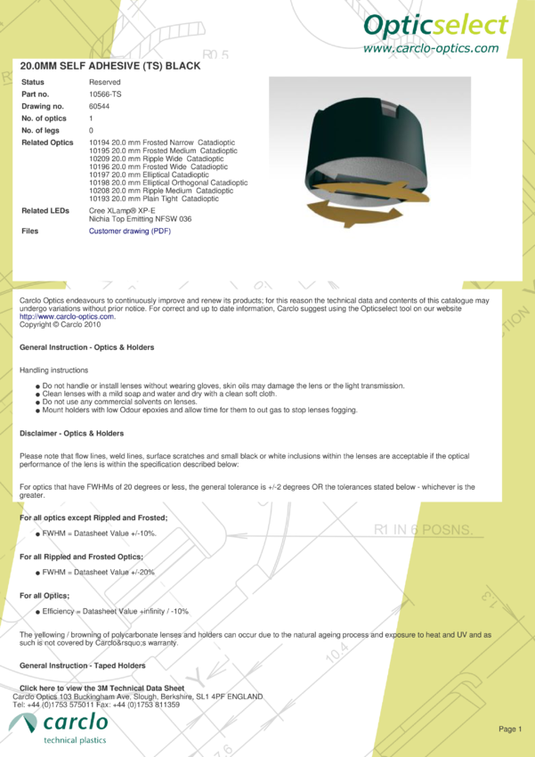 Holder Carclo 10566-TS, 20mm, na taśmie, czarny, do diod Cree serii XP, XT