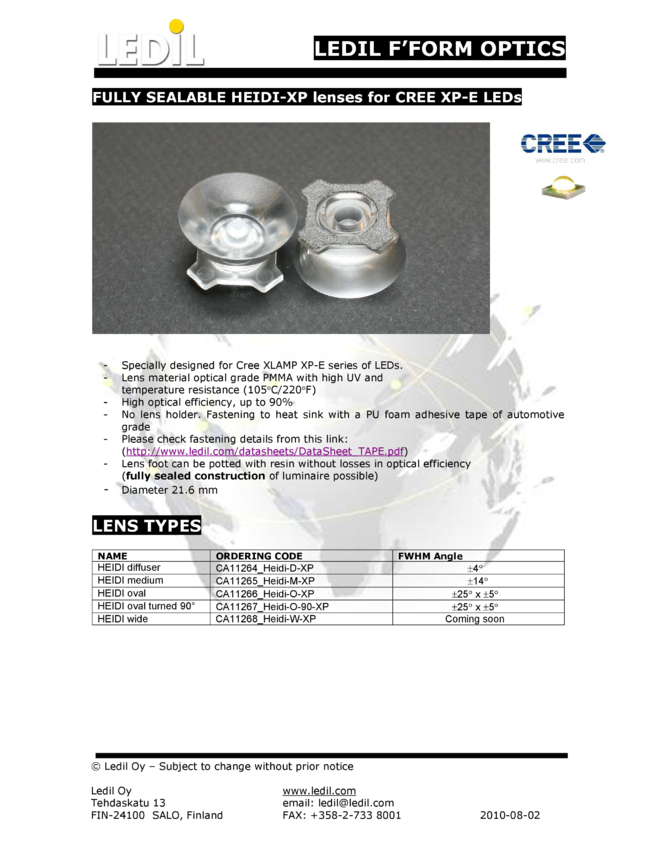 Soczewka HEIDI-D-11264, Diffuser, ±6&deg, do diod LED High Power CREE serii XP-G oraz XP-E i XP-C, na taśmie, Ledil