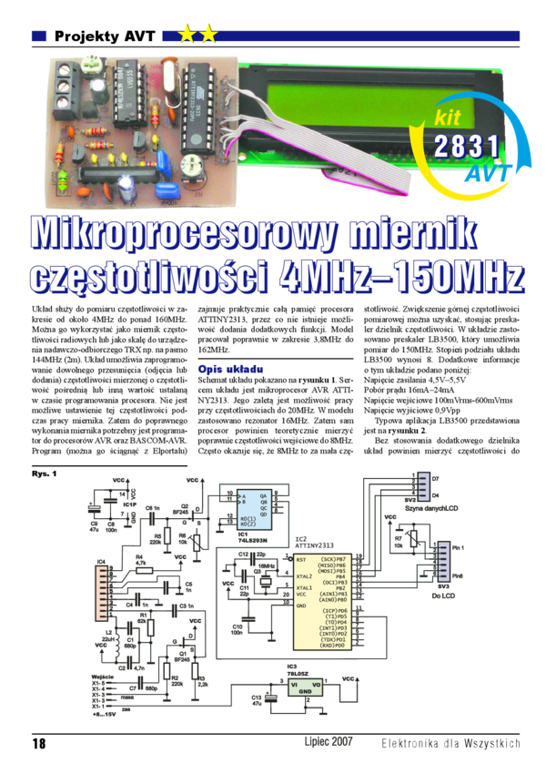 AVT2708 B Miernik częstotliwości RS-232 - zestaw do samodzielnego montażu