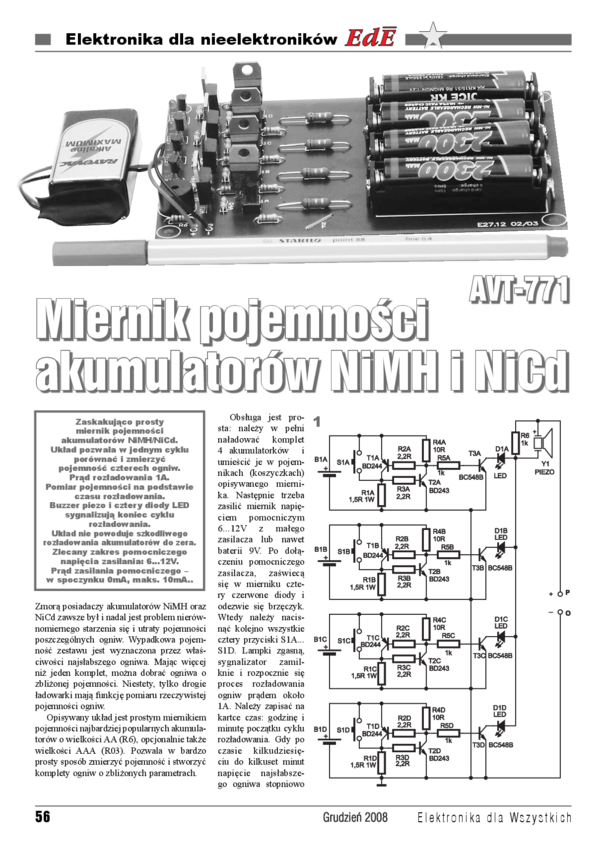 AVT771 Miernik pojemności akumulatorów NiMH i NiCd