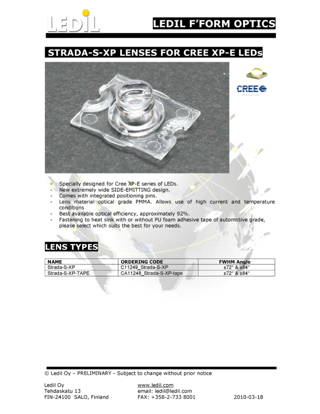 Soczewka STRADA-S-11248 na taśmie samoprzylepnej, ±72&deg & ±88&deg do diod LED High Power CREE seria XP-C, XP-E oraz XP-G, Ledil