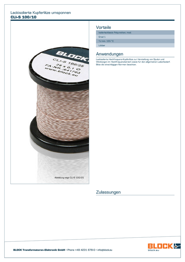 Drut miedziany, emaliowany Block CLI-S 100/25, 0.10 mm, 41 m