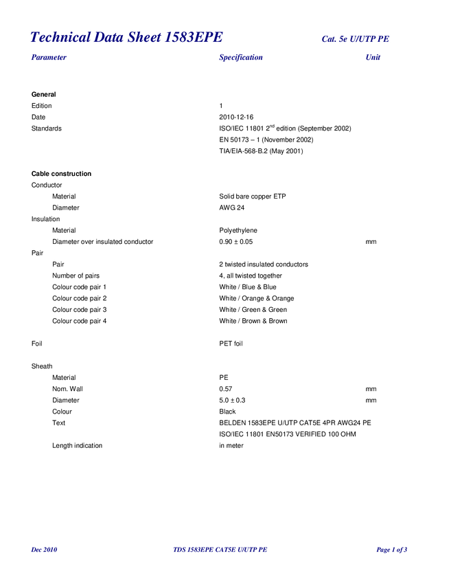 Kabel miedziany Belden U/UTP kat.5e drut PVC 305m skrętka szary c5e