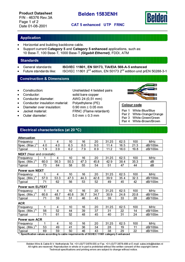 Kabel miedziany Belden U/UTP kat.5e drut PE skrętka 500m czarny CPR Fca