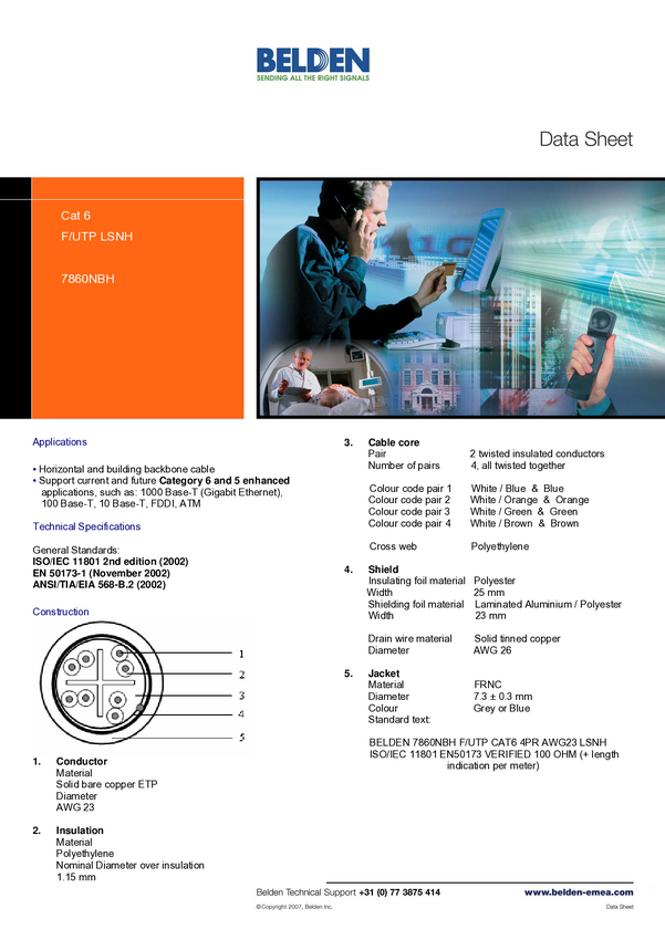 Kabel miedziany Belden U/UTP kat.5e drut LSOH skrętka 305m szary