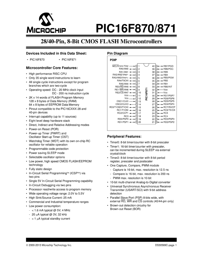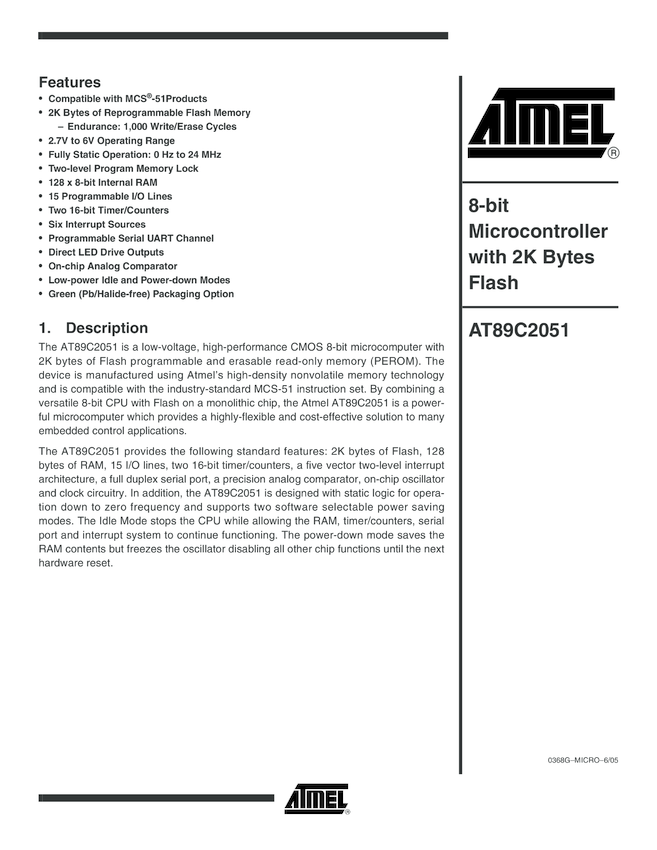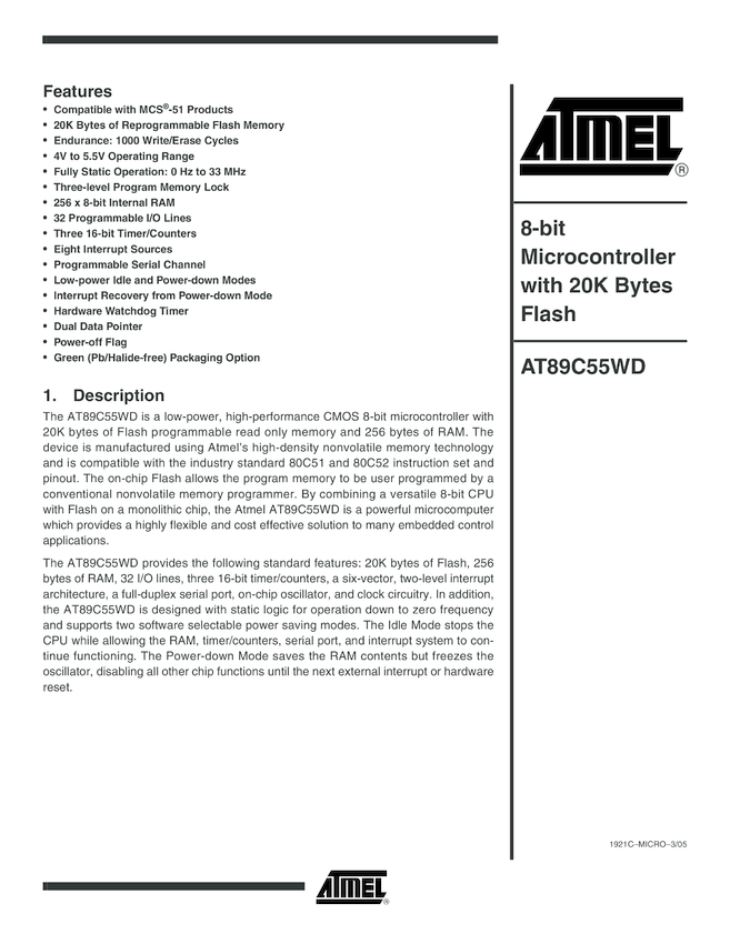 Mikrokontroler 8-bit, 20KB Flash, 2Kb RAM, DIL40, 4...5.5V