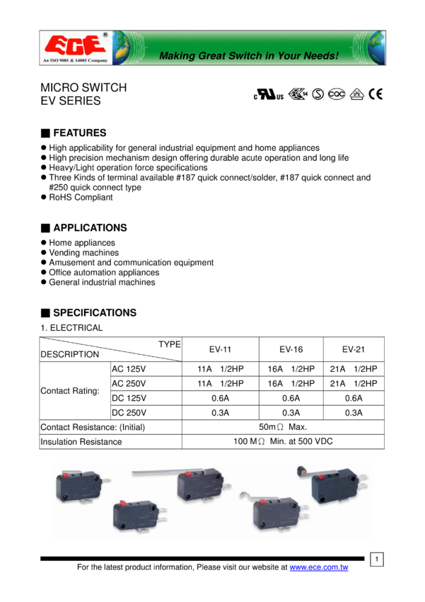 Sub-miniaturowy mikroprzełącznik z dźwignią, 1A/125VAC, z małą siłą nacisku, EXCEL