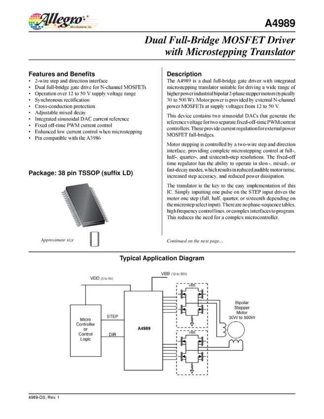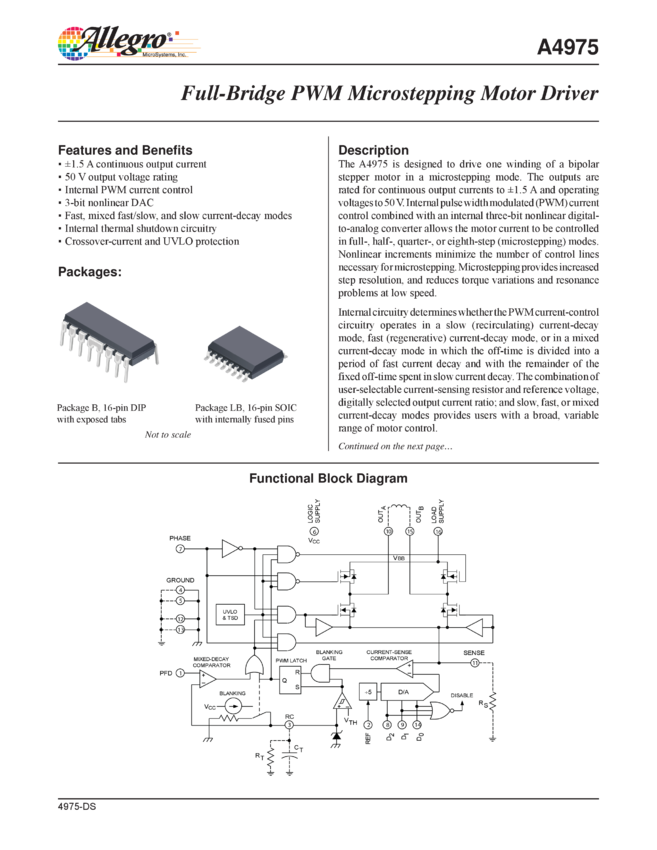 Sterownik silnika mikrokrokowego z wbudowanym translatorem oraz podwójnym pełnym mostkiem, napięcie wyjściowe 12 - 50 V, prąd wyjściowy: 2 A do 10A, interfejs równoległy