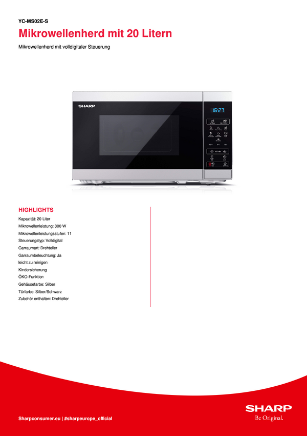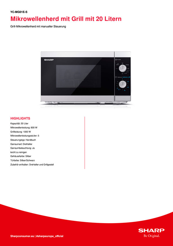 Mikrofalówka Sharp YC-MG01ES 800 W funkcja grilla czarny, srebrny