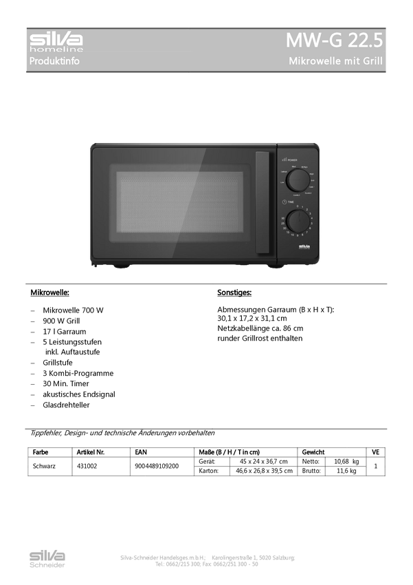 Mikrofalówka Silva Homeline MW-G 22.5 sw 700 W funkcja grilla, z funkcją timera czarny
