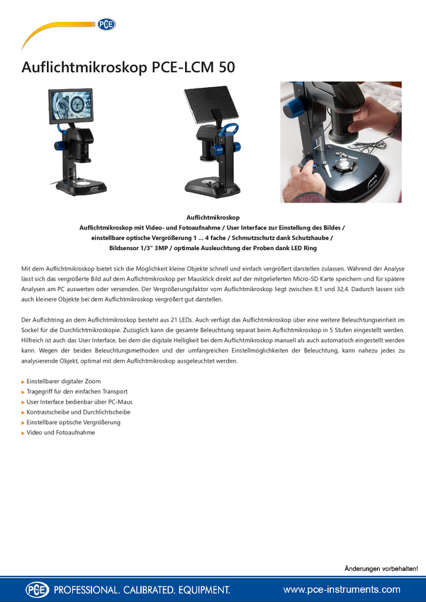 PCE Instruments PCE-LCM 50 Mikroskop ze światłem odbitym