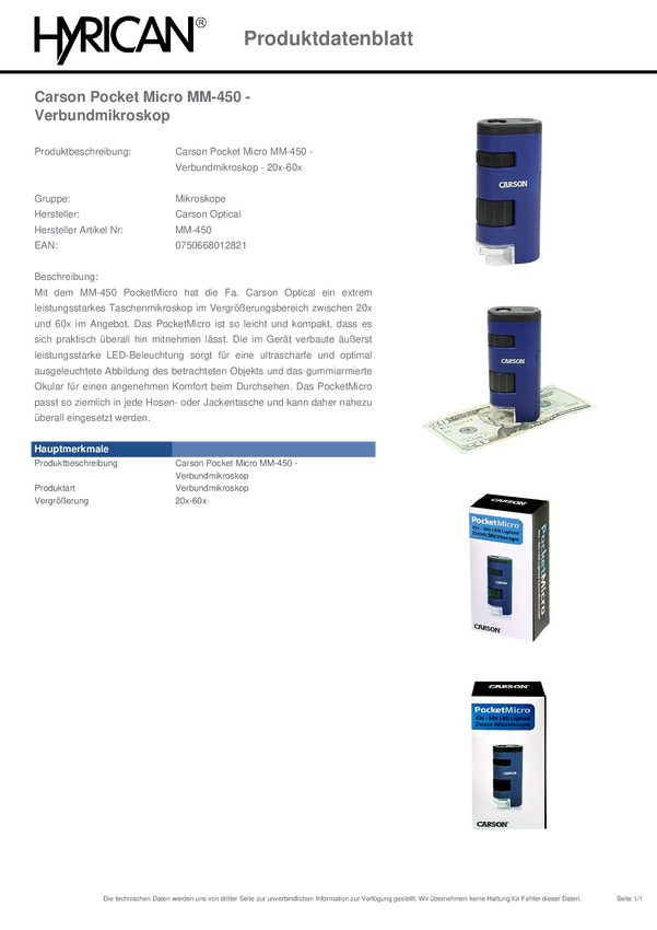 Carson Optical MM-450 Mikroskop kieszonkowy 60 x