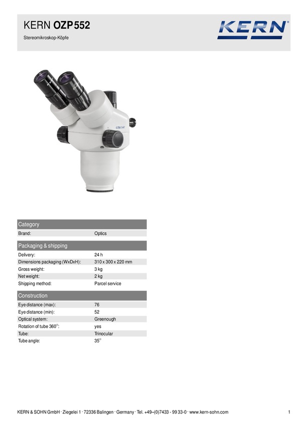 Kern OZL462 OZL 462 Głowica do mikroskopu Pasuje do marki (mikroskopu) Kern