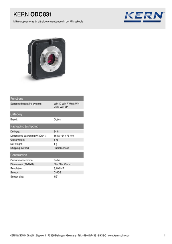 Kern ODC-83 ODC 831 Kamera mikroskopu Pasuje do marki (mikroskopu) Kern