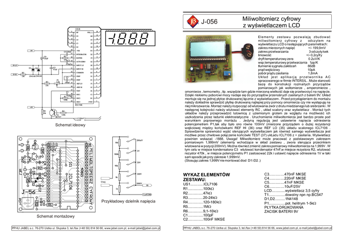 J-056 Miliwoltomierz cyfrowy LCD - zestaw do montażu