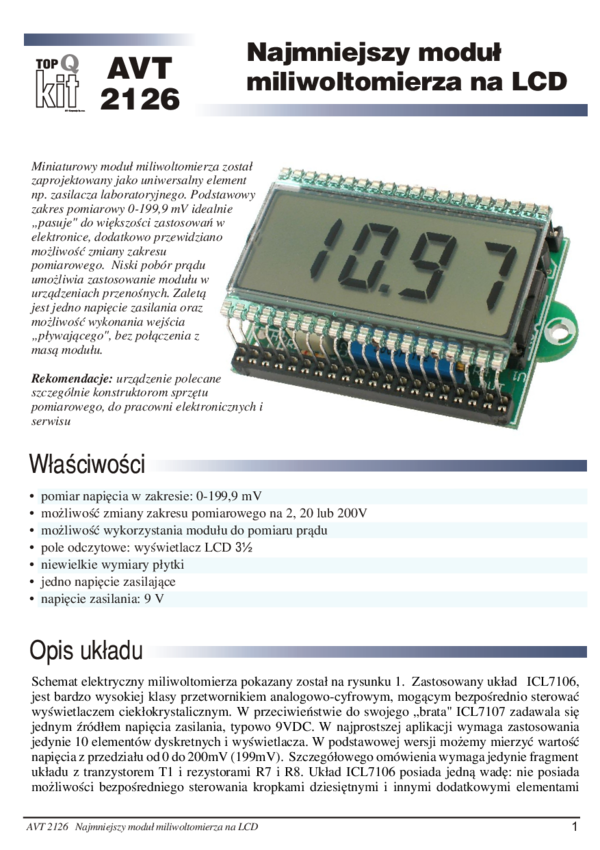 AVT2126 Najmniejszy moduł miliwoltomierza do zasilaczy