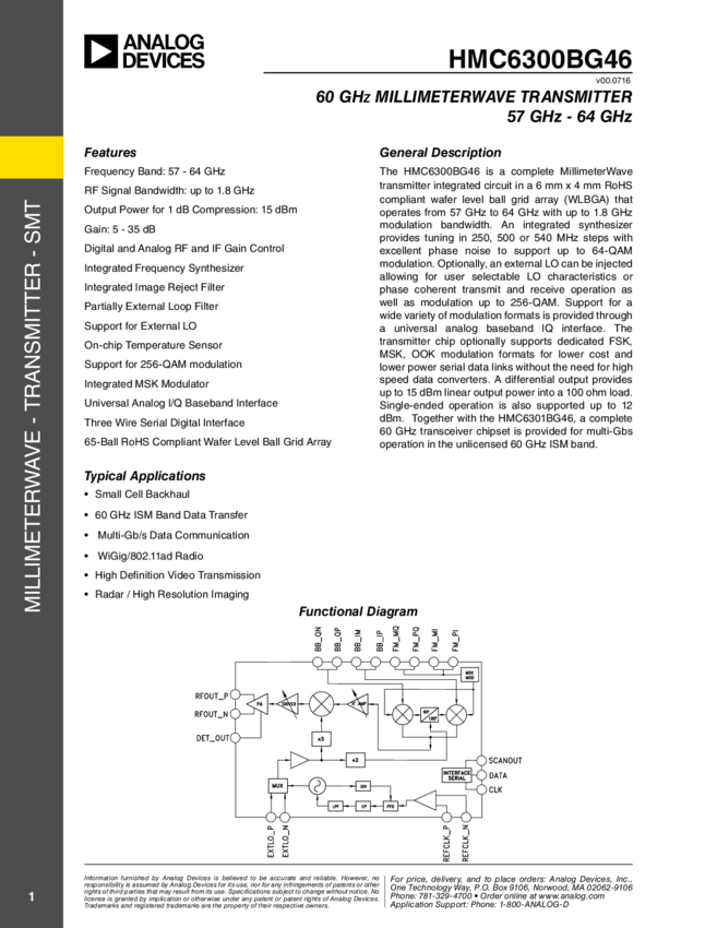 60 GHz MillimeterWave Transmitter, 57 GHz - 64 GHz
