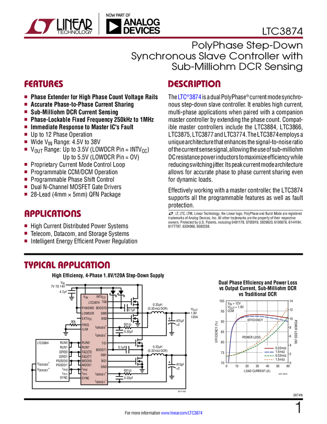 PolyPhase Step-Down Synchronous Slave Controller with Sub-Milliohm DCR Sensing