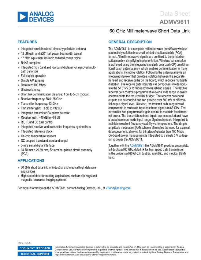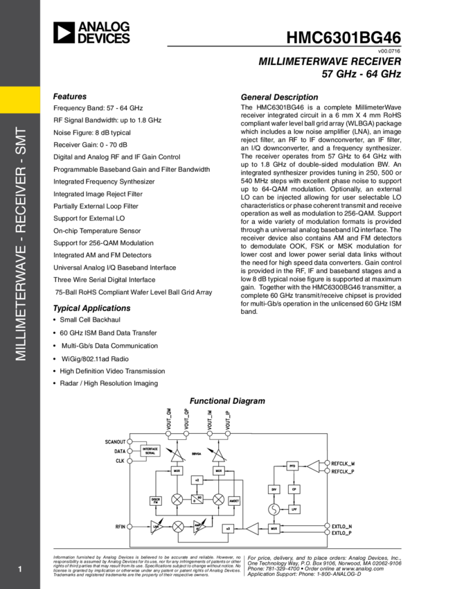 MillimeterWave Receiver, 57 GHz - 64 GHz