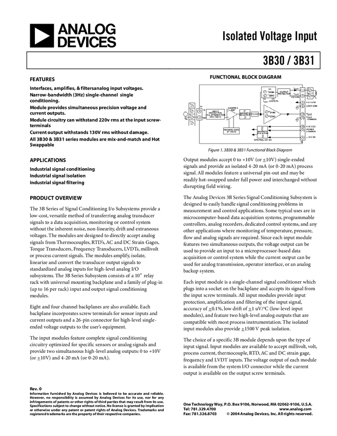 Isolated millivolt Input; 3 Hz Bandwidth Signal Conditioning Module