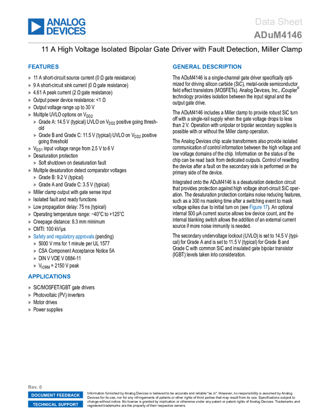 11 A High Voltage Isolated Bipolar Gate Driver with Fault Detection, Miller Clamp