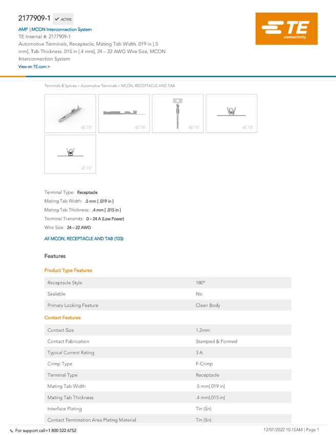 TE Connectivity 2177909-1 Miniaturization 0.50 - Terminals 2177909-1 TE Connectivity Zawartość: 17000 szt.