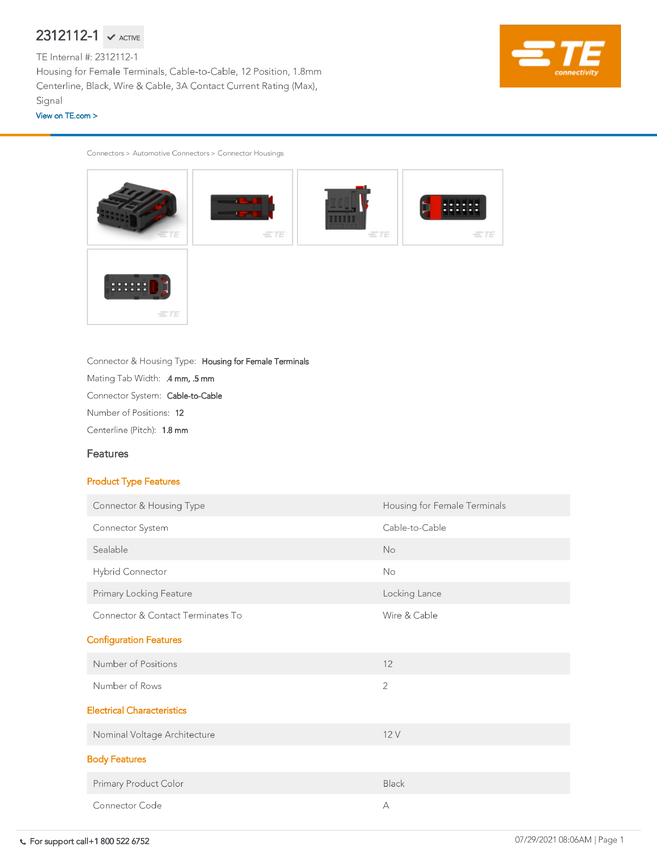 Miniaturization 0.50 - Connectors TE Connectivity 2312112-1 TE AMP Miniaturization 0.50 - Connectors, 1 szt.