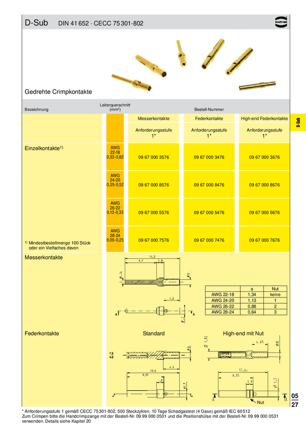 Styk męski Harting 09670007576 Minimalna średnica przewodu (system AWG): 28 Maksymalna średnica przewodu (system AWG): 2