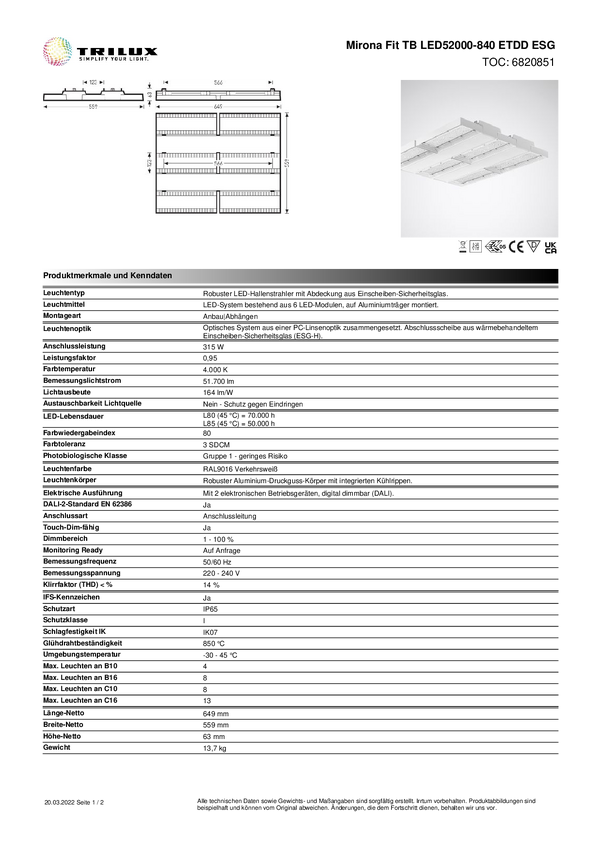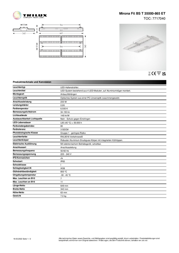 Lampa LED typu high-bay Trilux Mirona Fit #7717040 7717040, 1 szt.