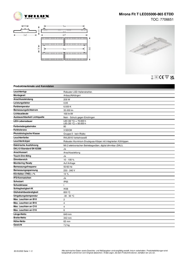 Lampa LED typu high-bay Trilux Mirona Fit #7706651 7706651, 1 szt.