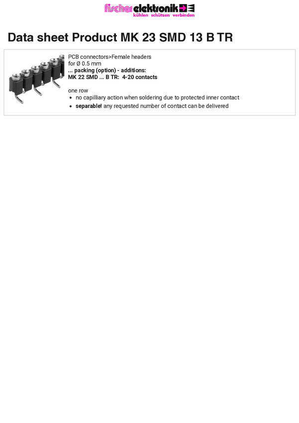 Fischer Elektronik MK23SMD13BTR Listwa kołkowa, żeńska, precyzyjna 600 szt.