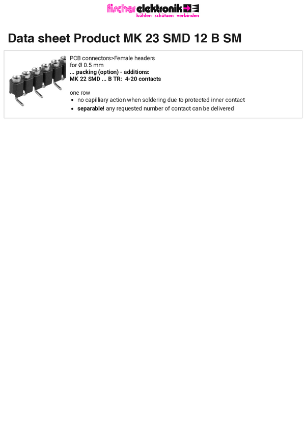 Fischer Elektronik MK23SMD12BTR Listwa kołkowa, żeńska, precyzyjna 600 szt.