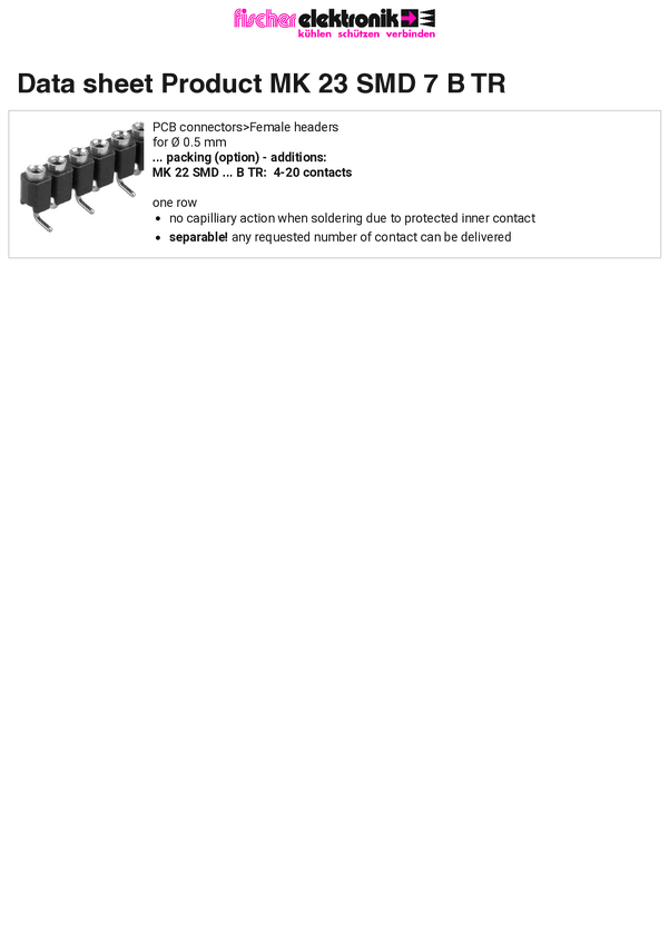 Fischer Elektronik MK23SMD7BTR Listwa kołkowa, żeńska, precyzyjna 600 szt.