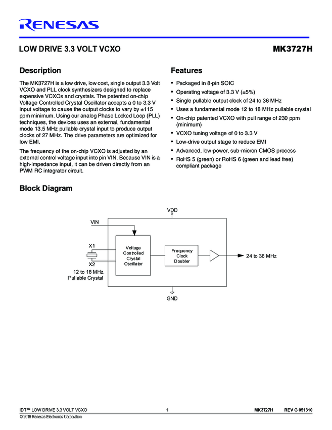 Low Drive 3.3V VCXO