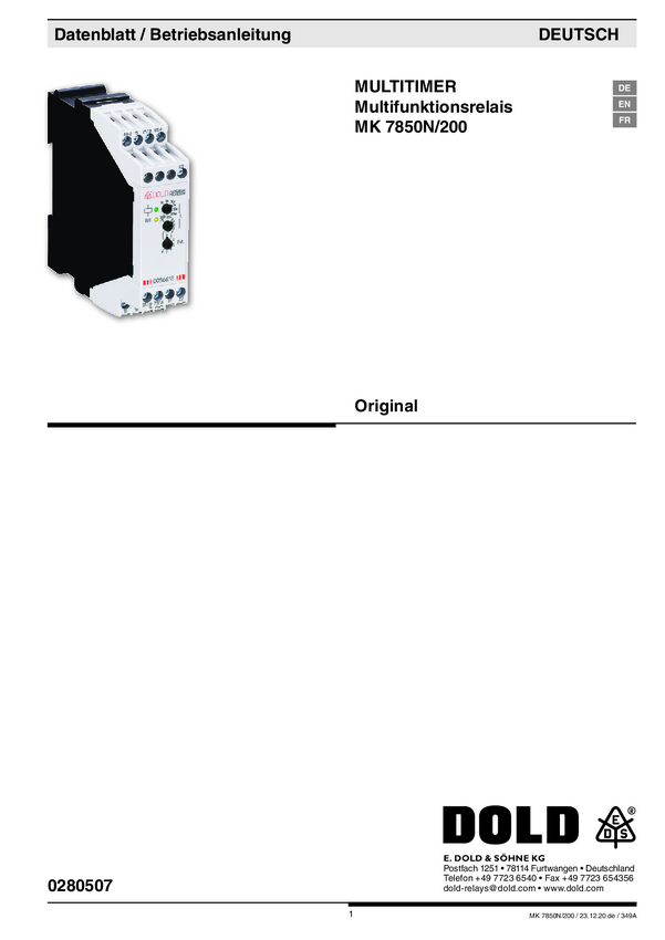 Dold 0056618 Przekaźnik czasowy MK7850N.82/200/61 AC/DC12-240V, 0.02 s - 300 h, 230 V/AC, 4 A, 1 szt.
