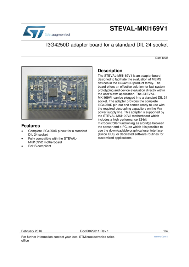 H3LIS331DL 3-axis digital accelerometer adapter board for standard DIL 24 socket, compatible with STEVAL-MKI109V2