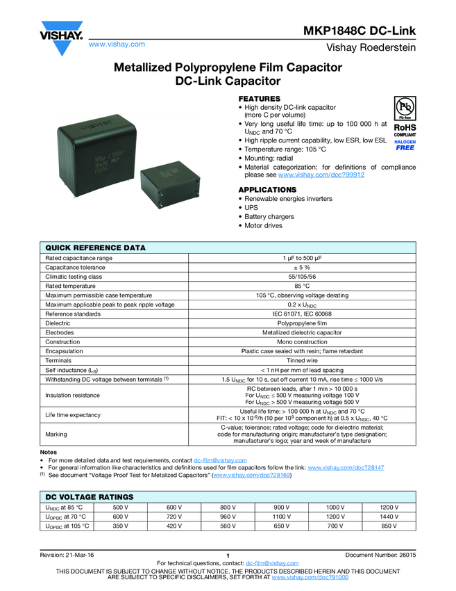 Metallized Polypropylene DC-Link Film Capacitor Industrial Grade