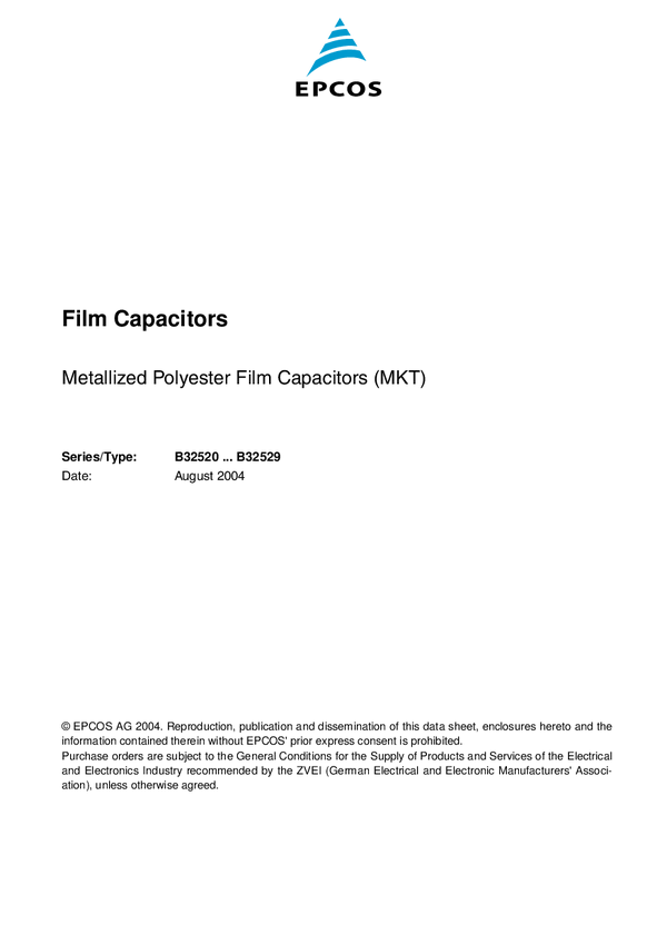 Kondensator poliestrowy metalizowany (MKT), Epcos B32529-C105-K, 1,0 uF, 63 V/DC