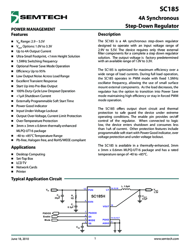 3MHz 600mA DC/DC Buck Converter in WLCSP and MLP package
