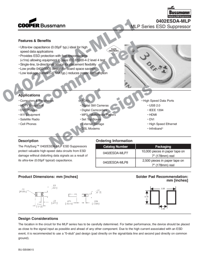 ESD Suppressor 15KV 2-Pin SMD T/R