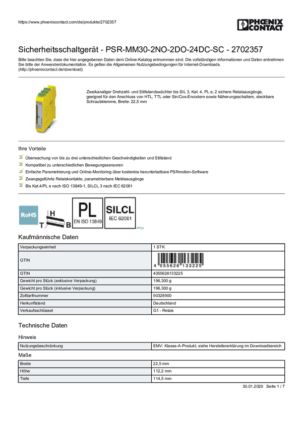 Przekaźniki bezpieczeństwa przełączający Phoenix Contact PSR-MM30-2NO-2DO-24DC-SC Ilość wyjśc przekaźnikowych: 2