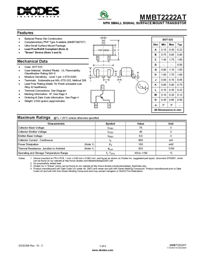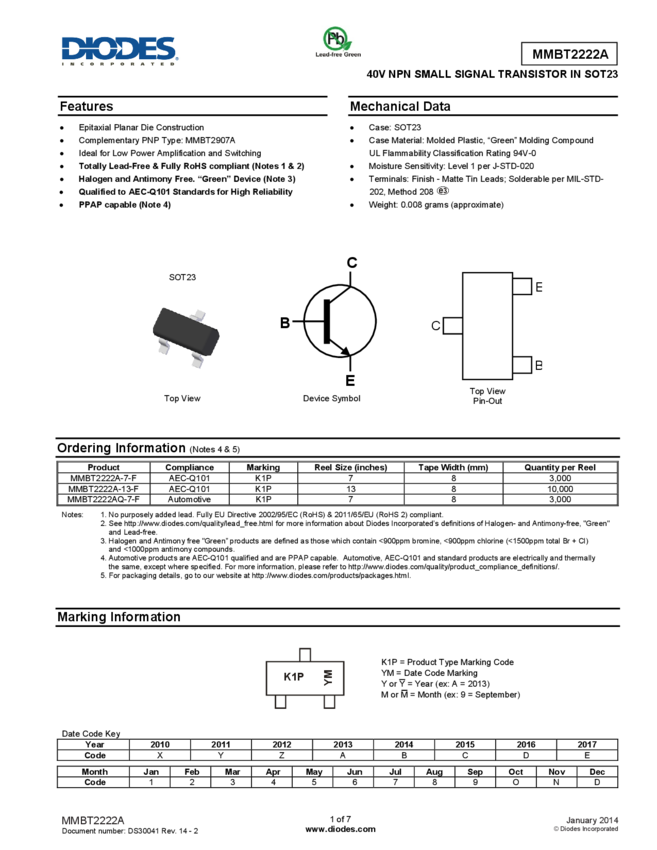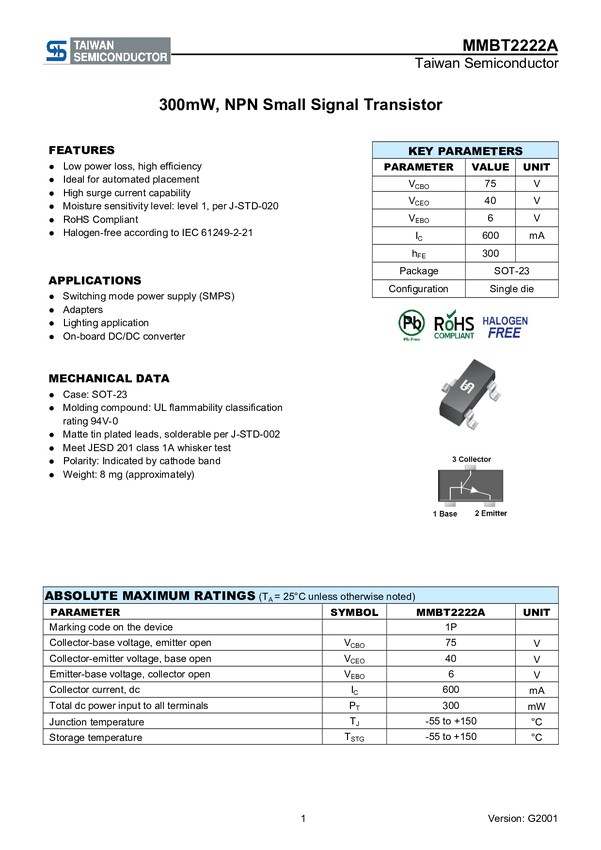 Taiwan Semiconductor MMBT2222A RFG Tranzystor (BJT) - dykretny 1 szt.