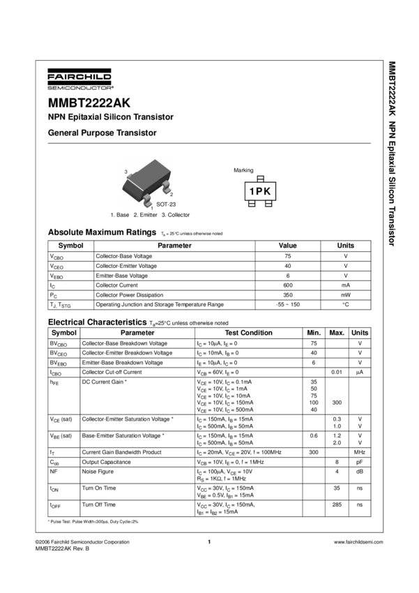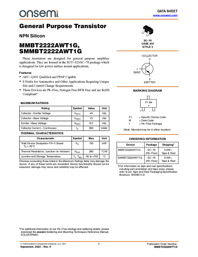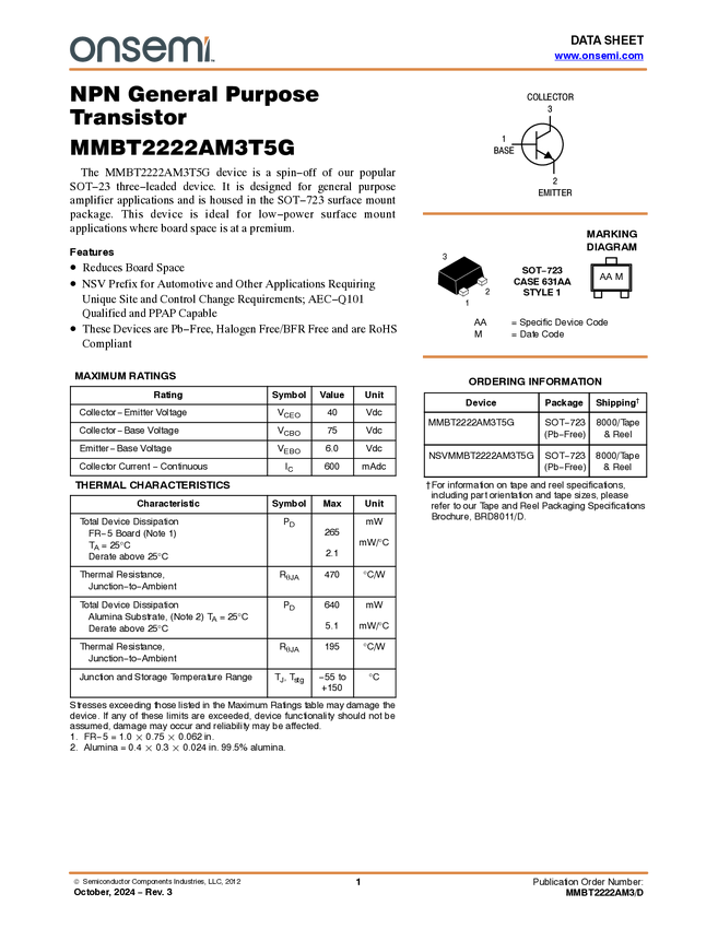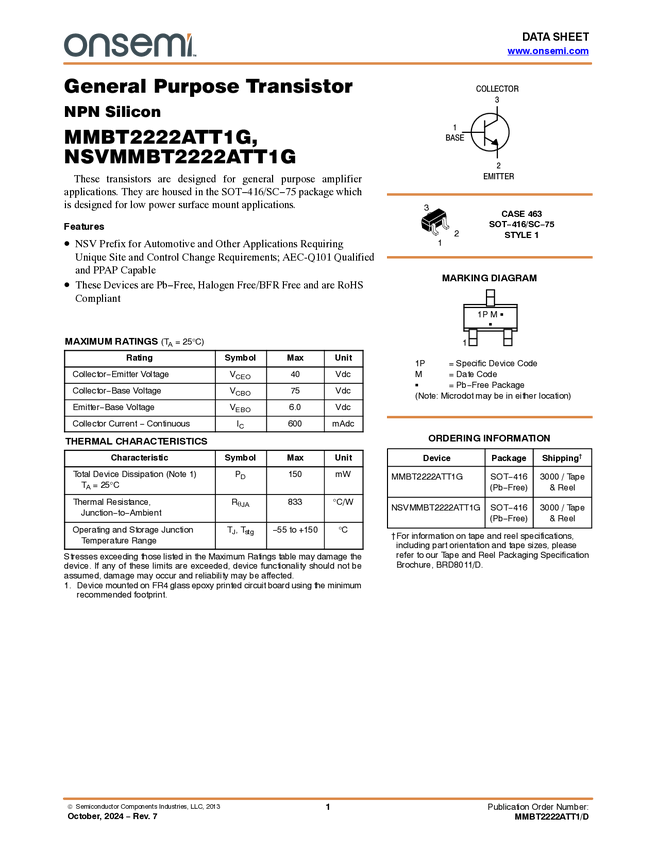 Tranzystor: MMBT2222ATT1G; NPN; 0,6A; 0,15W; 40V; 300MHz; SC75, SOT416; SMD; RoHS; ONSEMI; opakowanie/100szt