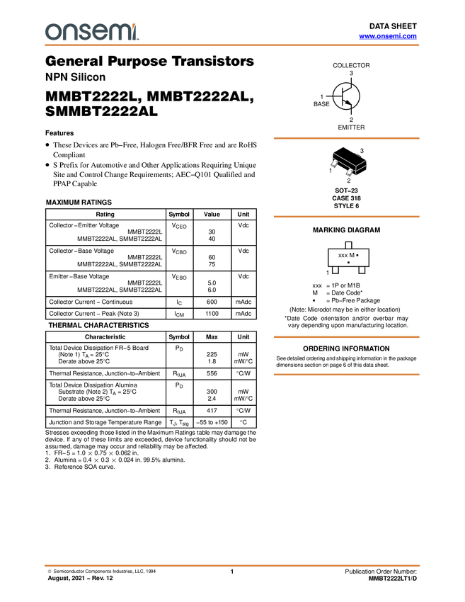 Tranzystor; MMBT2222ALT1G; NPN; 600mA; 40V; bipolarny; SOT23; SMD; RoHS; op/100szt